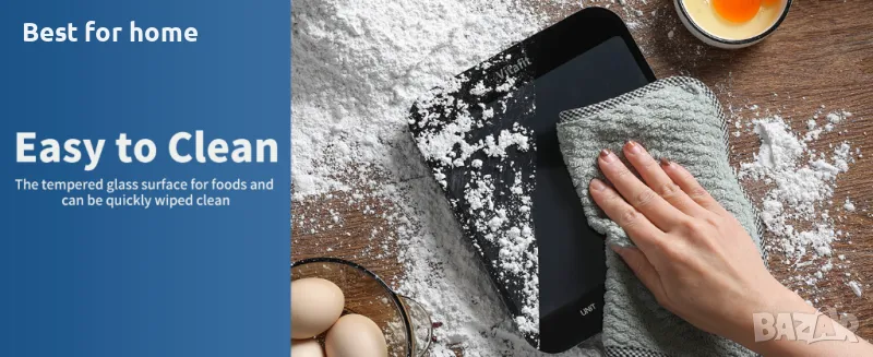Везната е проектирана от закалено стъкло със стабилни размери 8.5x7.1x0.9in / 215x180x22mm; Удивителният капацитет и платформата за претегляне Jumbo са за вашите нужди от претегляне във всяка кухня.