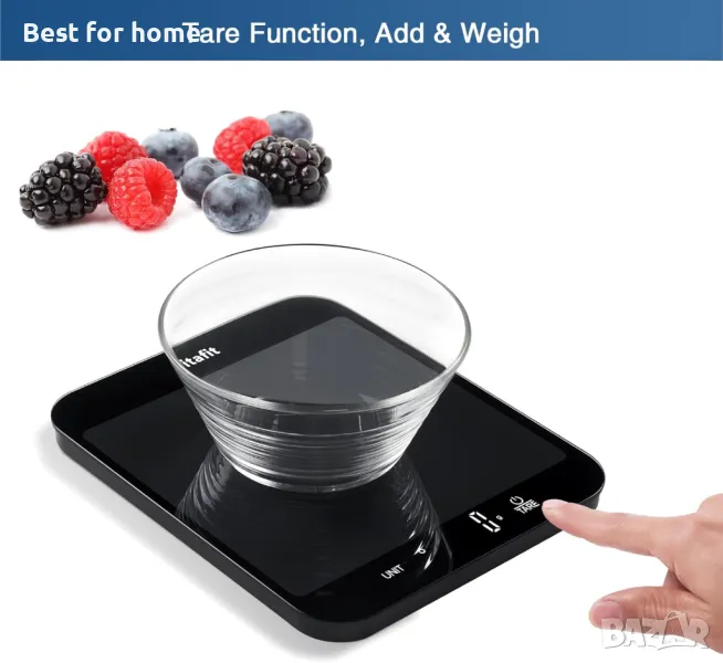 Функция Add & Weigh 'zero' (Tare) - позволява измерване на множество съставки в един и същ контейнер без местене.