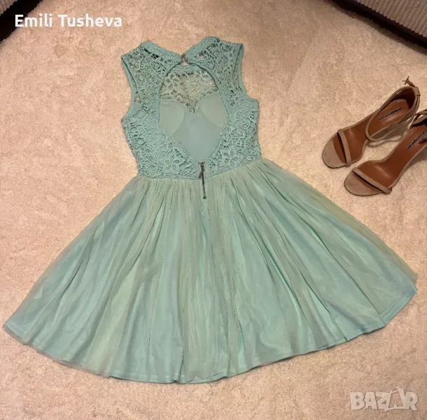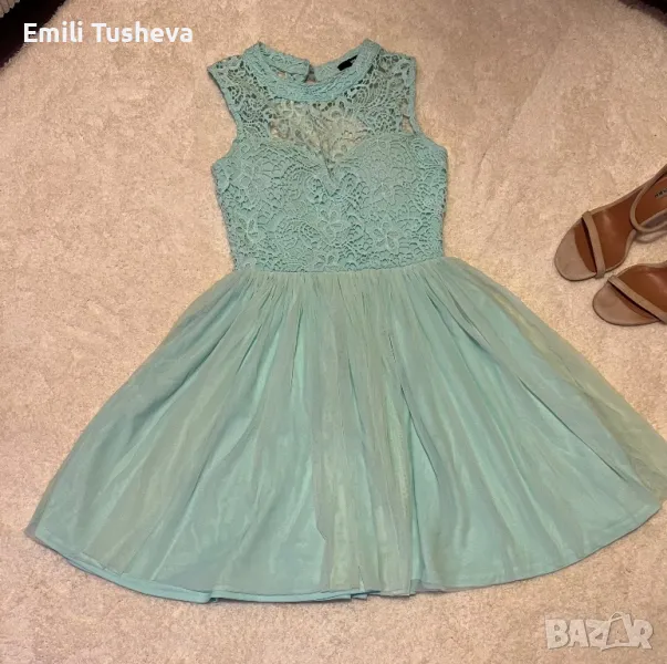 Стилна рокля.Горна част от дантела и на гърба с прорез.