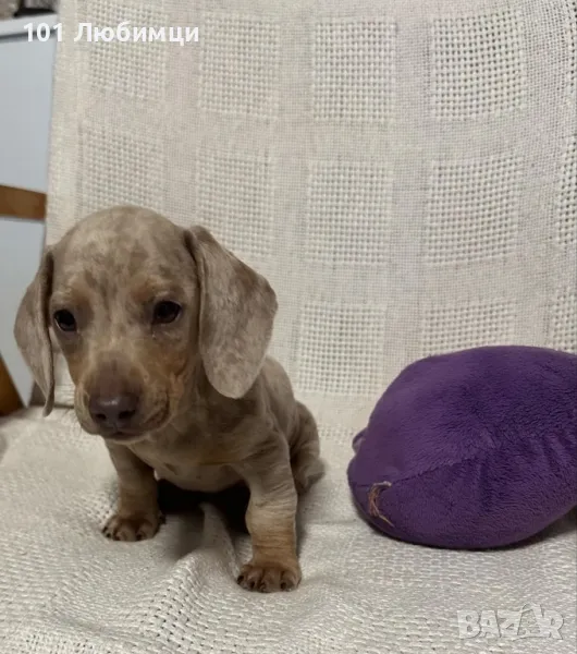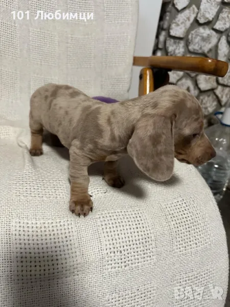 Свободно за продажба мъжко кученце от породата Дакел от рядката разцветка Изабела мерле,в момента е на два месеца и има направени всички необходими за възрастта си имунизации..За допълнителна информация на посочения телефон.