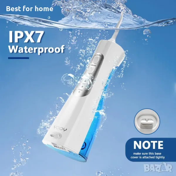 Подвижен резервоар за вода и IPX7 водоустойчив Подвижният резервоар за вода е по-лесен за почистване и пълнене, може да се използва непрекъснато в продължение на най-малко 2 минути, достатъчно, за да направите цялостно почистване на устната кухина, а степента на водоустойчивост IPX7 гарантира безопасна и приятна употреба. Интелигентният дизайн предотвратява изтичане, така че можете да го използвате безопасно под душа.