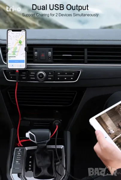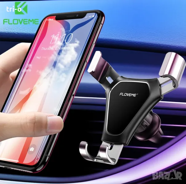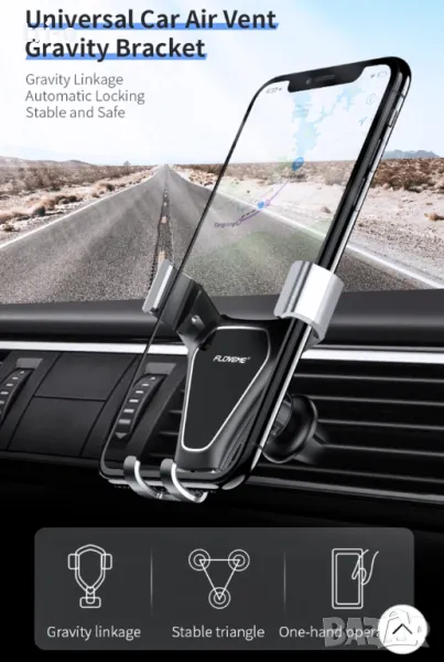 FLOVEME Универсална стойка за телефон за автомобил за поставяне на въздуховода + FLOVEME Универсално мини зарядно за автомобил 5V / 3.1A, два USB порта за зареждане.