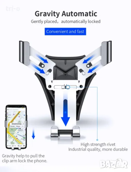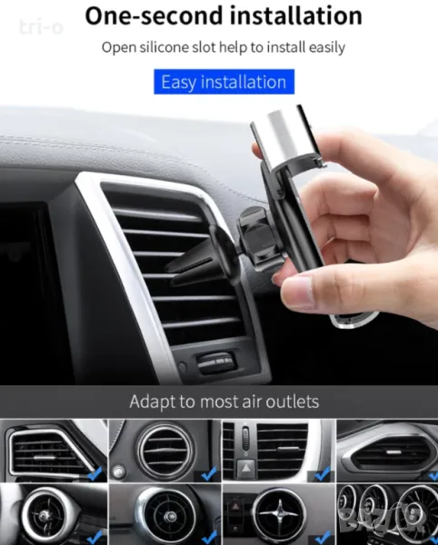 Закача се лесно и гарантира здраво и стабилно захващане за въздуховода на автомобила.