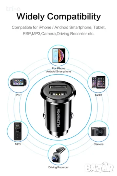 Универсално мини двойно USB зарядно за кола;