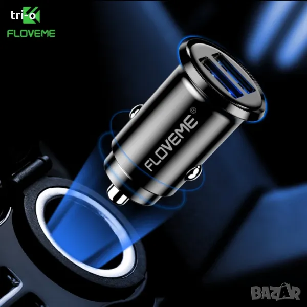 FLOVEME Универсална поставка за телефон за автомобил+мини зарядно за кола 5V/3.1A Dual USB