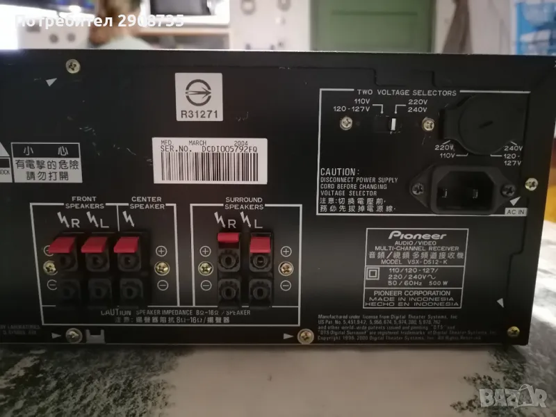 AV приемник за домашно кино с много връзки като: 3x цифрови,