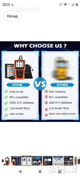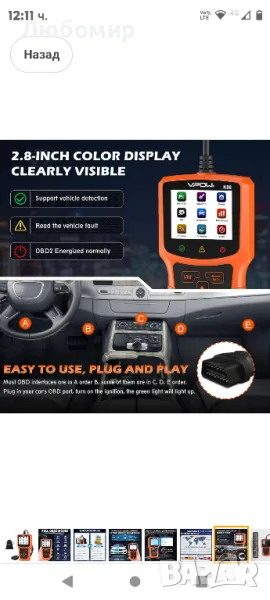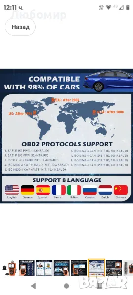 автомобили след 1996 (САЩ), 1998 (Канада), 2002 (ЕС) и 2008 (Азия). Работи и с 12V дизелови автомобили. Забележки: Инструментът за диагностично сканиране CAN не е съвместим с превозни средства с нова енергия, хибридни превозни средства, дизелови двигатели и превозни средства, които не отговарят на OBD2 протокола. Моля, проверете модела на вашия автомобил, преди да купите.Търсене на 35 901 DTC данни: За разлика от скенерите за диагностика на автомобили в традиционен режим, този иновативен скенер за четене на кодове за грешки на двигателя за всички автомобили с OBDii протокол от 1996 г. има база данни с до 35 901 DTC, които могат бързо да помогнат за диагностицирането и разрешаването на проблемите на вашия автомобил, спестявайки ви време и надминавайки функционалността на повечето конвенционални OBD. бази данни на пазара. Plug and Play OBD2 скенер тестер, без нужда от батерии или зарядни устройства, екологичен и удобен.Удобен за потребителя дизайн: 2,8-инчовият цветен дисплей OBD2 (240 x 320 пиксела) е ясен и видим при различни условия на осветеност, подобрявайки вашето потребителско изживяване. 90-сантиметровият кабел е изработен от гъвкав изолационен материал за комфортно усещане и допълнителна безопасност. Тежи 220 грама и е с размери 7,0 x 3,4 x 0,9 инча. OBD2 скенер Поддържа 8 езика: английски, немски, китайски, испански, френски, италиански, руски, холандски.