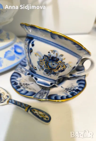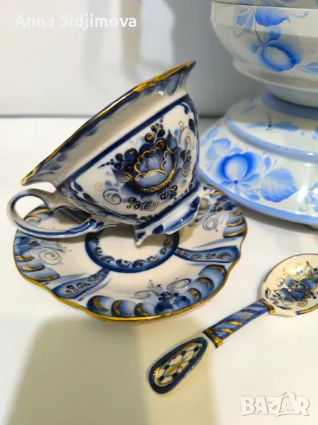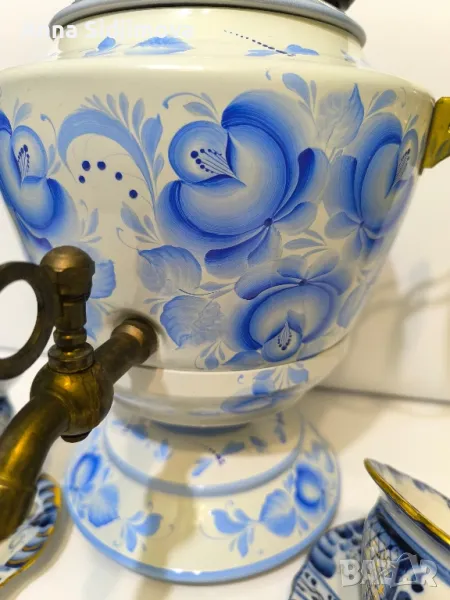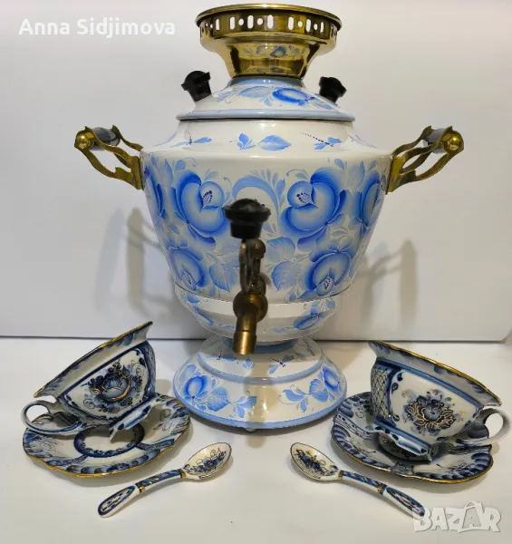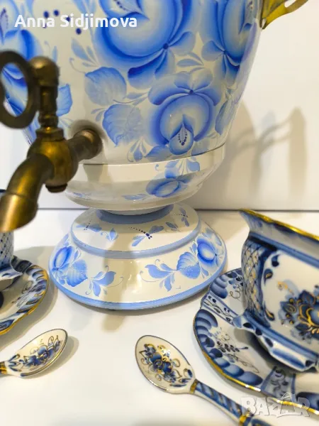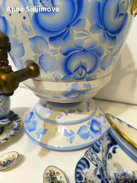 Гжель самовар и двоен сет за чай → Обява 48258225