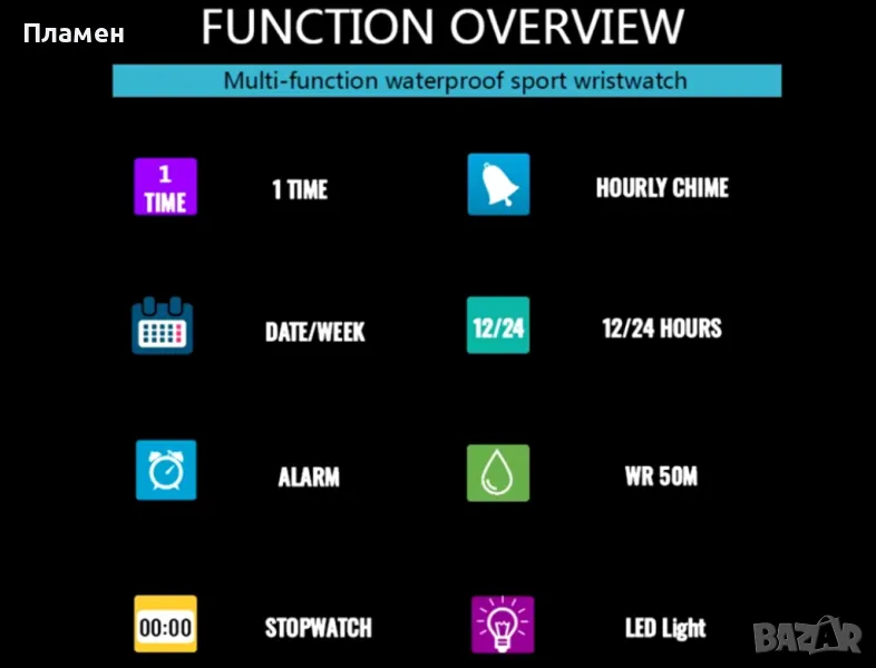 Водоустойчивата дълбочина е до 30M (не натискайте никакви бутони във водата)
