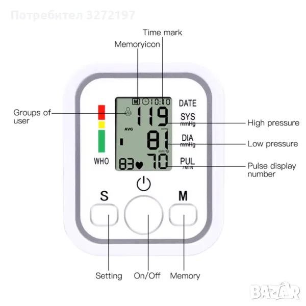 2. Голям капацитет за съхранение: 99 измервания ви позволяват да сте в крак с цените на кръвното налягане. Сравнете показанията от последните няколко дни, за да можете да предприемете стъпки, за да избегнете неприятни изненади.