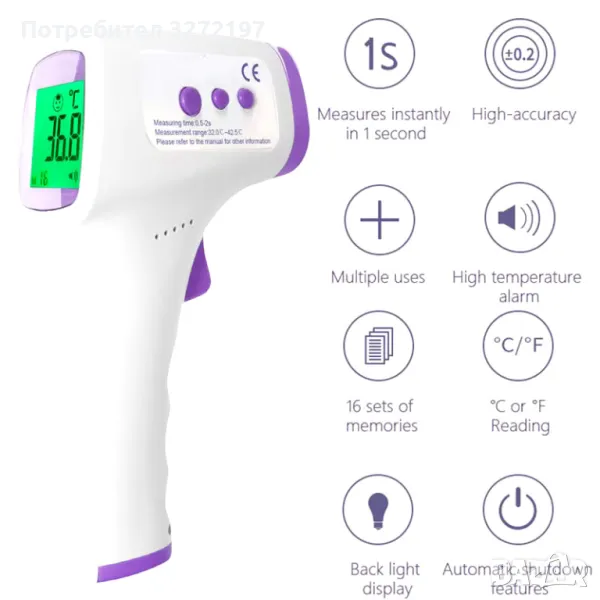 2. Лесна работа: Продуктът поддържа измерване на температурата с един бутон. Термометърът бързо ще измери температурата при натискане на спусъка.