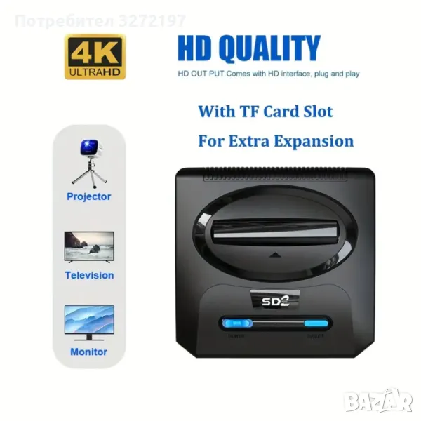 Мини игрова конзола 2.4G 4K HD видео карта с памет Разширяема 3000+ класически ретро игри Plug and Play Симулатор на носталгия Мини игрова конзола Електронна + 2бр.безжичен джойстик. • 4K HD видео карта с памет: Насладете се на превъзходно видео качество с 4K HD видео карта с памет, осигуряваща плавно и завладяващо игрово изживяване.