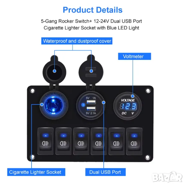 - Широка съвместимост: Проектиран за универсална съвместимост, този превключвателен панел е подходящ за широка гама превозни средства, включително автомобили, морски лодки, яхти, камиони, RVs и други, което го прави идеален ъпгрейд за вашата електрическа система.