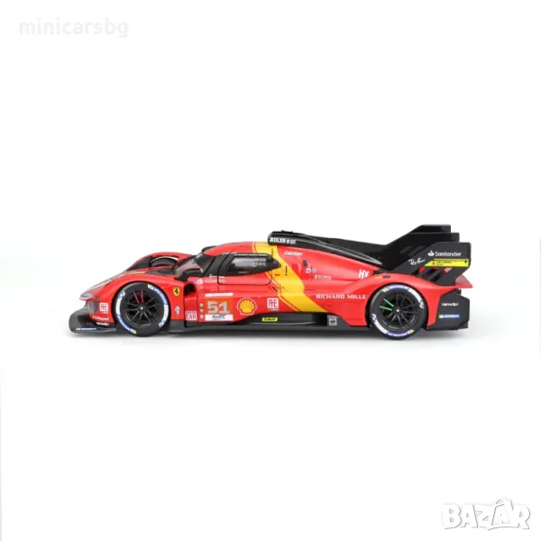 Пригответе се да изпитате тръпката от скоростта с умаления модел на Ferrari 499P LMH. Тази детайлна реплика улавя силата и елегантността на легендарното Ferrari, завършено в привличащ вниманието червен цвят, който привлича вниманието докрай подробно, това Ferrari 499P LMH #51 е истински шедьовър.