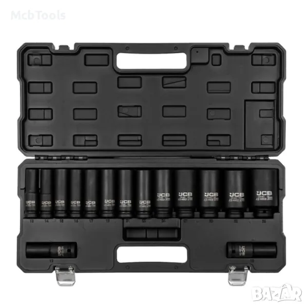 Комплект дълбоки ударни вложки 12-стенни 1/2″ (10 – 36 мм) 15 части JCB