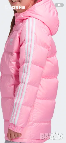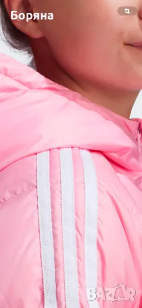 Страхотно детско яке Adidas в розов цвят, изработено от висококачествена материя с мека и топла подплата от пух и пера. Моделът е с цип по цялата дължина и два странични джоба с цип. Дизайнът е изчистен, а в страничната част на ръкавите са разположени иконични те за марката три ленти. Логото на марката е разположено на гърдите, а в страничната част има два джоба. Якето е подходящо както за всеки ден, така и за различни видове спорт. Много добре се съчетава със спортно долнище или дънки.