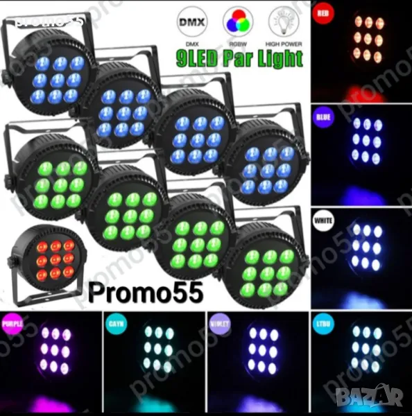 LED Диско Парти Прожектор, Диско Лампа с 9 Лед Диода