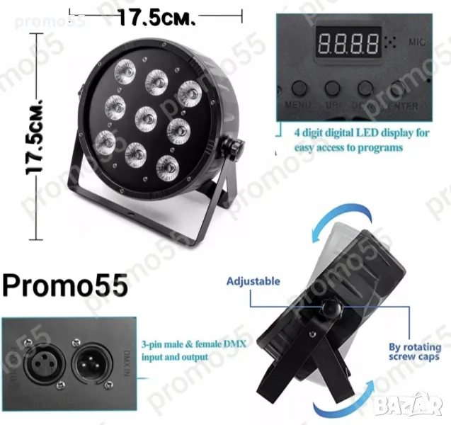 Лед Лампата е с 9 светодиодна светлина с ефект на RGB гладко смесване на цветовете за сценично осветление и осветление на DJ парти