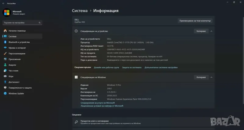 Напълно функционален! Много безшумен, тих, хладен и добре оптимизиран компютър. Работи изключително стабилно! Собствен доживотен ключ за активиране на Windows 10/11 Pro. Перфектен и оптимален е за Linux. Почистен с подменена термопаста на процесора и видеокартата. Инсталиран е лицензиран Microsoft Office 2021 Professional Plus. Може да се използва за офис работа, игри, работна станция, мултимедия, ежедневни задачи, изчисления, чертане, рисуване, фото, видео и аудио обработка, видео стрийминг, видео наблюдение и други.