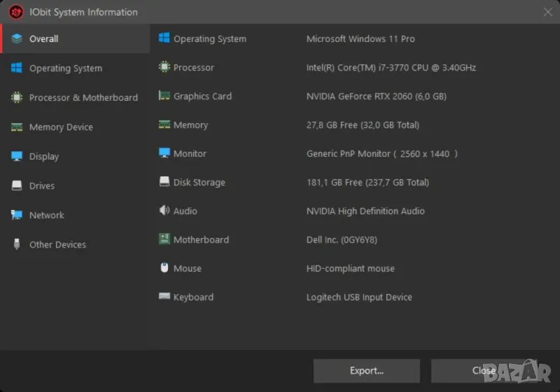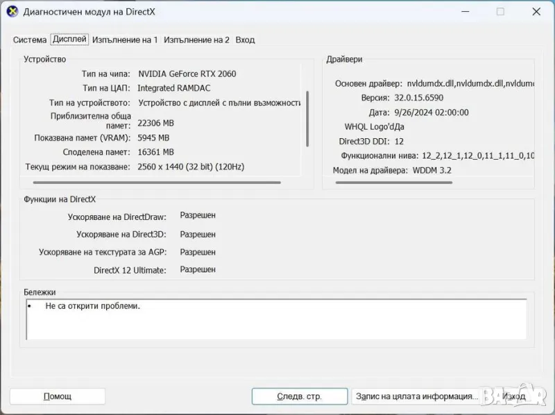 Тествани игри: Minecraft, Fortnite, CS:GO, GTA 5, MK10, Call of Duty, Witcher 3, God of War, NFS, Assassin's Creed, Wolfenstein, Medal of Honor... Работят на средни настройки. Синтетични тестове Макс. FPS 210-220 , Mин. FPS 33-40 при 1080p. 177Hz макс 82 °C при пълно и продължително натоварване! Общо взето, видеокарта има стабилно и силно представяне, което задоволява изискванията на съвременните игри и приложения . RTX 2060 дават основание да се очаква плавна игра дори при по-високи графични настройки особено с включен DLSS ,Ray Tracing. На 99% от хората с общо потребление този компютър е напълно достатъчен. Поддържа и 4K видео. Подарък клавиатура и мишка. От бартери не се интересувам! Причината за продажбата е, че не се използва – имам и други компютри и тези ми са вече твърде много. Цената е твърда и не се коментира!!!