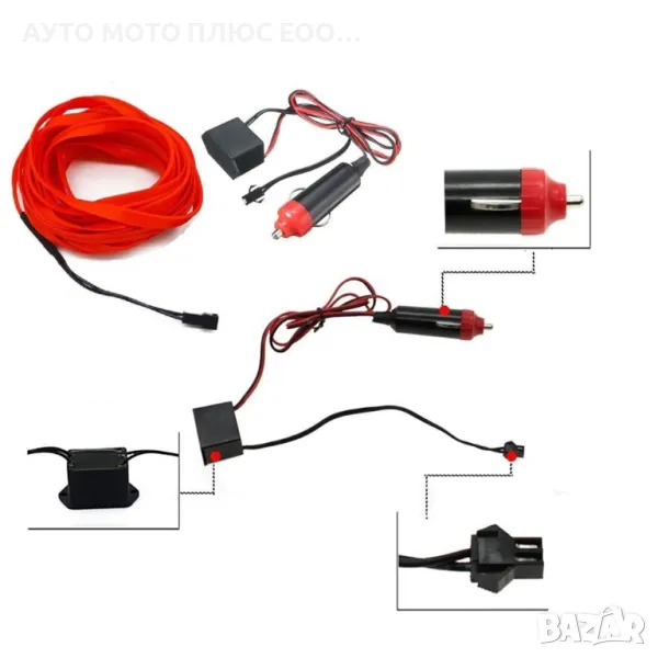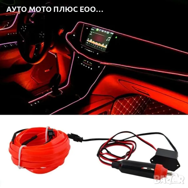 Интериорна лед лента за осветяване на арматурното табло, която е позната още като амбиентно осветление за кола. Лед лентата е енергоспестяваща, водоустойчива и подлежи на корекция. Тя очертава точните извивки на интериора на автомобила и придава по стилен дизайн. Не вреди на зрението. Ергономичната и форма позволява да се огъва под всякаква форма. Може да се използва за външна и вътрешна употреба. Захранва се от гнездото на запалка. Подходяща е за използване в автомобили, каравани, камиони, декорация у дома и други.