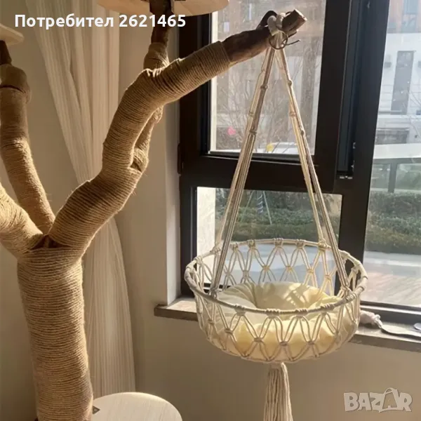 Ръчно изработена висяща люлка, хамак, легло за котки в бохемски стил, котка