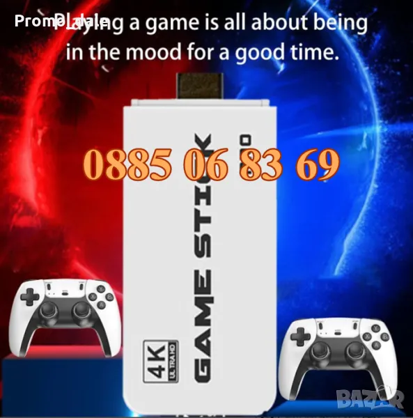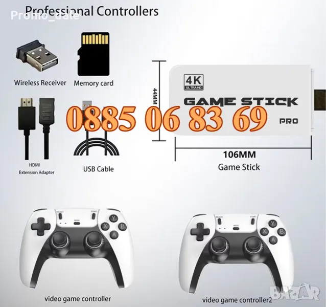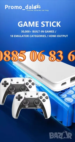 Игрова конзола Retro Console M15 4K Pro Game Stick, 64G, 30 000 видео игри, 9 емулатора, 2x безжичен контролер 2,4 GHz