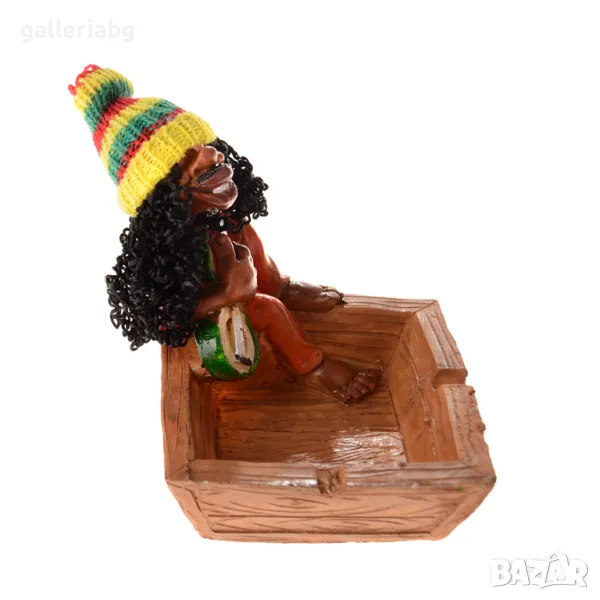 Пепелник със забавна декоративна фигурка - седнал мъж с музикален инструмент.