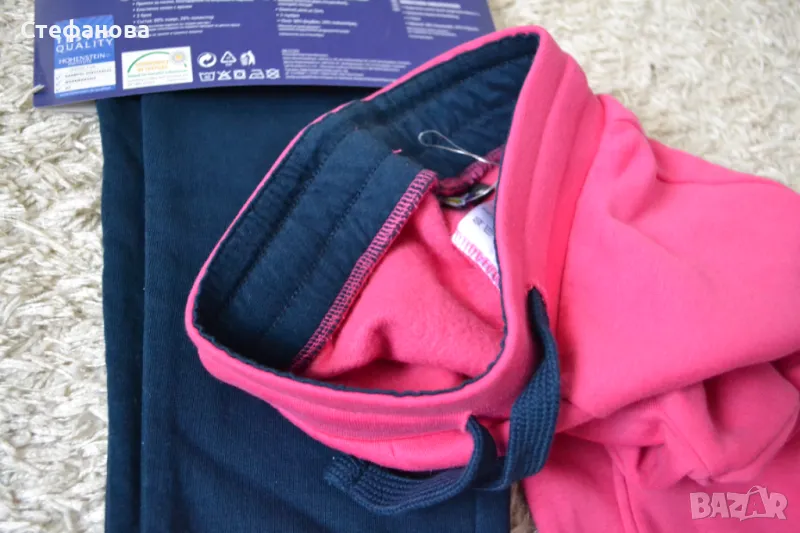 2 нови с етикетите долници ватирани памучни в тъмно синьо и тъмно розово . Меки, удобни и топли.