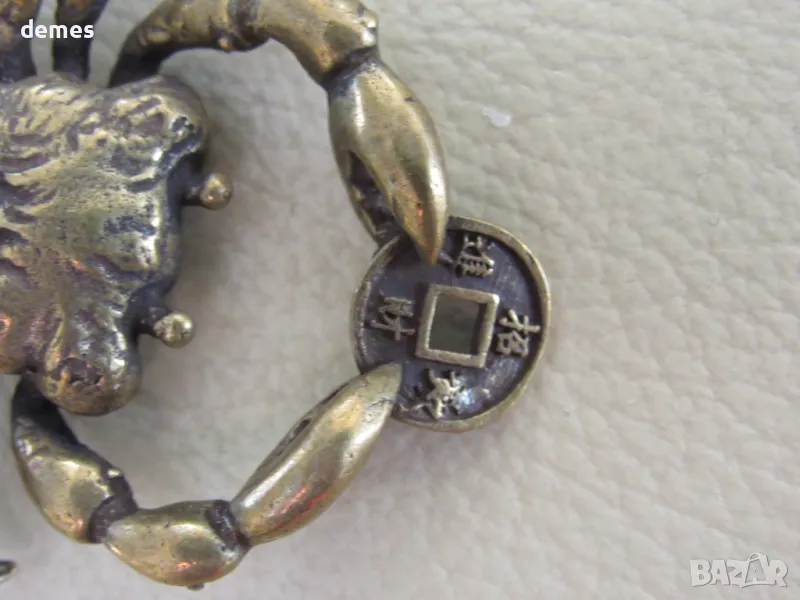Този ключодържател е сръчно изработен от бронзово-месингова сплав.