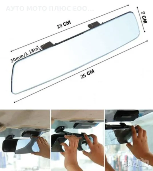 Панорамно огледало за обратно виждане за кола с щипка - 25 см. → Обява 48263575