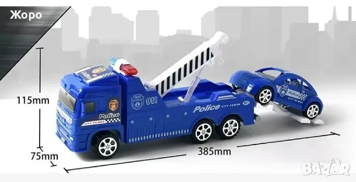 Детски комплект полицейски камион автовоз ,паяк,пътна помощ с теглич и полицейска кола 070442