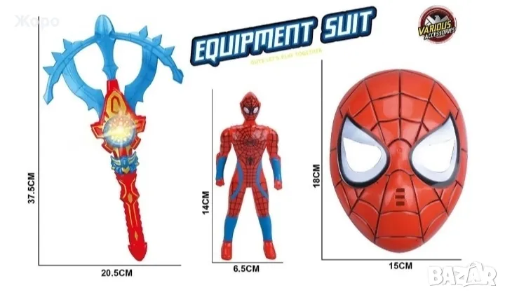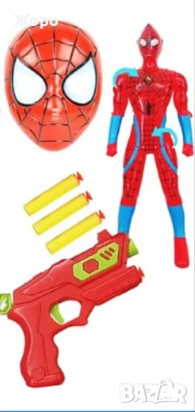 Един страхотен комплект посветен на супергероите и на техните най-запалени фенове. Той съдържа фигурка на Спайдърмен,един от най-обичаните персонажи , маска и оръжие - арбалет със звук и светлина, пистолет с меки стрели приключението, като пресъздаваш сцени от филма или измисляш нови сценарии!