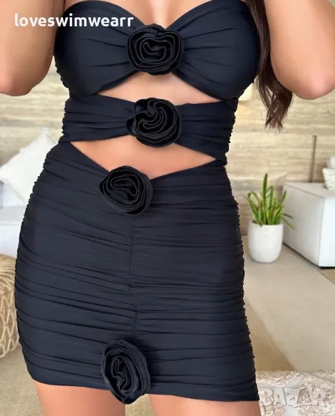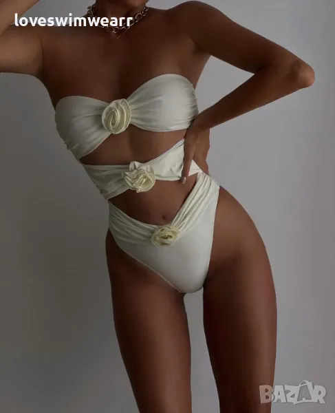 Цял бански от три части с рози. Модела е с подплънки.
