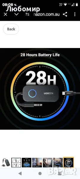UGREEN Airplane Bluetooth 5.2 адаптер за предавател за Airpods или слушалки, два чифта, 2-в-1 безжичен Bluetooth 3,5 mm Aux аудио предавател/приемник за полет, телевизия, стерео уредба за кола, бягаща пътека.Страхотен спътник при летене: Свържете предавателя Ugreen Bluetooth 5.2 в режим TX и предавайте аудио сигнали в самолет или с телевизори, които не поддържат Bluetooth, към безжични Bluetooth устройства. С разстояние на предаване до 10 метра, предавайте безпроблемно, без нужда от наплетени кабели за слушалки.28-часов дълъг живот на батерията: Вземете до 28 часа (TX28H/RX 20H) аудио възпроизвеждане; зареждайте през USB-C порт, добавяйки бързо зареждане и удобство към зареждането по всяко време.Двойно сдвояване за споделена музика: Свържете две AirPods или безжични Bluetooth слушалки едновременно чрез Bluetooth приемника. Споделяйте музикални и визуални изживявания с близки любовници или приятели по време на полет с лекота.