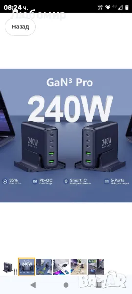 240W USB C зарядна станция, Aftertop 5-Ports PD 100W PPS 45W QC30W лаптоп GaN