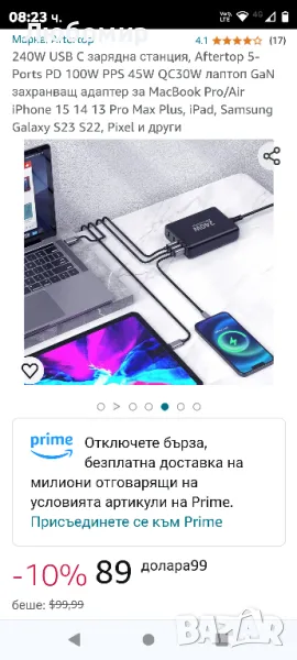 240W USB C зарядна станция, Aftertop 5-Ports PD 100W PPS 45W QC30W лаптоп GaN захранващ адаптер за MacBook Pro/Air iPhone 15 14 13 Pro Max Plus, iPad, Samsung Galaxy S23 S22, Pixel и други.Когато използвате USB-C1, C2 и C3 портове заедно, USB C зарядната станция осигурява 100 W+65 W+65 W (общо 230 W) мощност за 3 лаптопа. Когато C1, C2, C3 и A1 портове се използват едновременно, той може да осигури 100W+65W+45W+30W (общо 240W) висока мощност за 3 лаптопа и 1 мобилен телефон.Захранван от подобрена усъвършенствана технология на галиев нитрид (GaN), това бързо зарядно устройство blcok може да намали загубата на енергия и топлината с 30% и да поддържа ниска температура, дори когато работи при пълен капацитет от 240 W мощност, също така прави зарядното устройство GaN 35% по-малък от традиционното зарядно устройство.USB C настолно зарядно устройство има 3 USB-C порта и 2 USB-A порта, осигурява 100W+65W+12W+30W+12W мощност, когато всички портове работят едновременно, можете бързо да зареждате вашия лаптоп , мобилен телефон, таблет и повече едновременно, отговарят на всички ваши нужди от зареждане.Поддържа протоколи за бързо зареждане PD3.0, PPS, QC5/QC4+/QC3.0, AFC, FCP, 2.4A. Перфектно съвместим с устройства iPhone, Samsung, Huawei и други устройства с USB-C или USB-A порт.Захранващият адаптер от 240 W е съвместим добре с повечето електронни устройства на пазара. Може да зарежда бързо за MacBook Pro 16''/14''/ 13'', MacBook Air, iPad Pro/ Air, iPhone 14/13/ 12(Pro/Pro Max/ Mini),