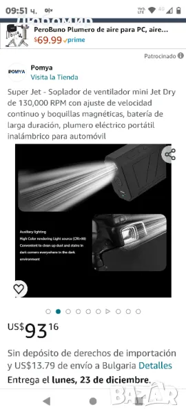 Такова устройство би било особено полезно за автомобилните ентусиасти, които трябва да поддържат интериора на автомобила си чист, или за техници, които работят с електроника и трябва ефективно да охлаждат или почистват своите устройства.Мощна производителност: Супер струен вентилатор с до 130 000 RPM и максимална скорост от 50 m/S въздушен поток изсушава бързо повърхностите, осигурявайки ефикасно и ефективно почистване на отломки, листа или прах за по-кратък период от време.Регулируема скорост: Въздушната бърсачка има функция за безстепенно регулиране на скоростта, която може лесно да регулира скоростта на вятъра според нуждите и може да се използва в различни сценарии, като почистване на открито, автомобили, компютри, клавиатури, почистване на сняг и косми от домашни любимци в колата.Магнитни дюзи: Вентилаторите Jet са оборудвани с магнитна дюза, която фокусира въздушния поток, за да ускори сушенето. Той може бързо да премахне прах и мръсотия от всички ъгли, като гарантира, че повърхността е чиста и без драскотини.Дълъг живот на батерията: Струйният вентилатор се предлага с USB Type-C кабел за зареждане, който улеснява зареждането на всяко устройство. Напълно зареден може да издържи до 3-4 часа. Въздушният прах има защита от прегряване и множество отвори за разсейване на топлината за дълъг живот.