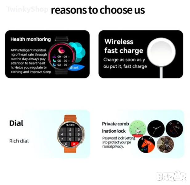 Ultra 9 Смарт Часовник 2024 - Безжично Зареждане, Bluetooth Повиквания и Спортни Функции