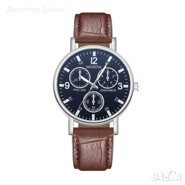 Вариант 2: мъжки часовник с черен циферблат и кафява каишка;