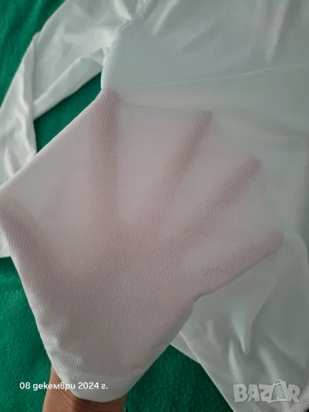 Блузката е като нова, няма забележки. Подходяща за дете на 6/7г. Тънка и леко прозрачна материя,бързосъхнеща.