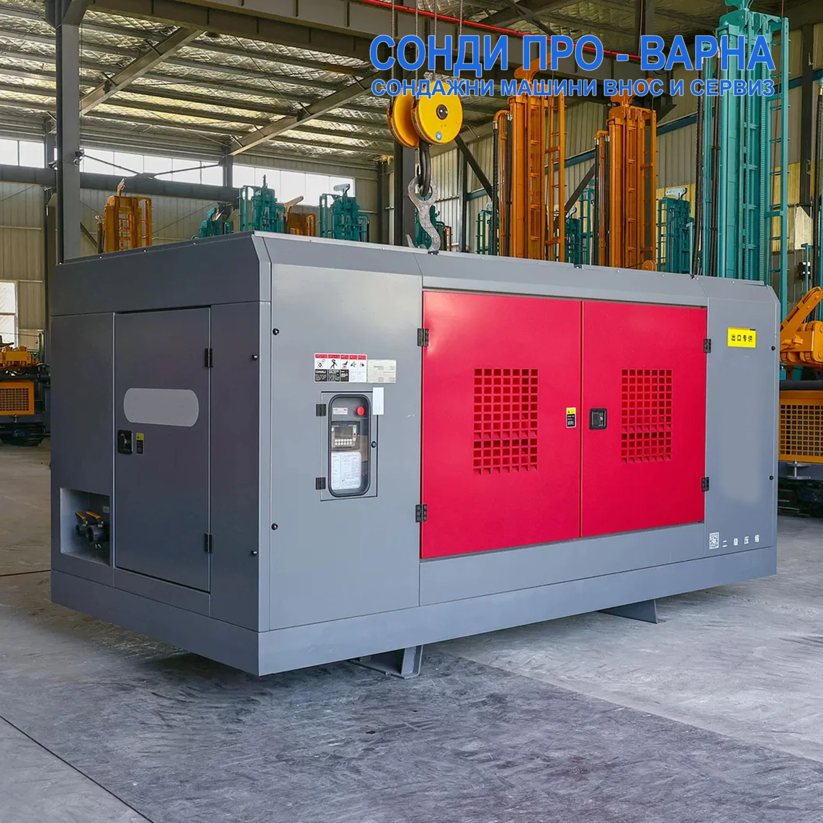 Нов Професионален Мобилен винтов компресор ST18m3-10, 18м3/мин (18000 л/мин), дизелов двигател 217 к. с, 18 бара . Цената е за компресора без ДДС, и с гаранция: до 6 месеца и до 1000 мото часа, което се изпълни първо. Производство и доставка по поръчка до 90 дена с морско навло цена: 33650 ЕВРО без ДДС в промоция до 30. 12. 24 година, след промоция 36000 ЕВРО без ДДС Производство и доставка по поръчка до 40 дена с жп влак навло: +4200 Лева с ДДС Производство: Завод в Китай! ЕС СЕРТИФИКАТ: ДА! . - Други модели сондажни машини и компресори предлагани от Сонди Про-Варна, може да видите в страницата ни в mobile. bg: tampers. mobile. bg - Друго предлагано ново индустриално оборудване внос от Европа предлагано от РЕМТЕХСТРОЙ ГРУП може да видите на адрес: www. remtechstroy. eu/bg . Дизеловият компресор ST18m3-18 е необходим за непрекъснато подаване на сгъстен въздух към различни пневматични инструменти. Може да се използва в строителството, в различни производствени предприятия, складове. Също така се използва за въздушно пробиване със