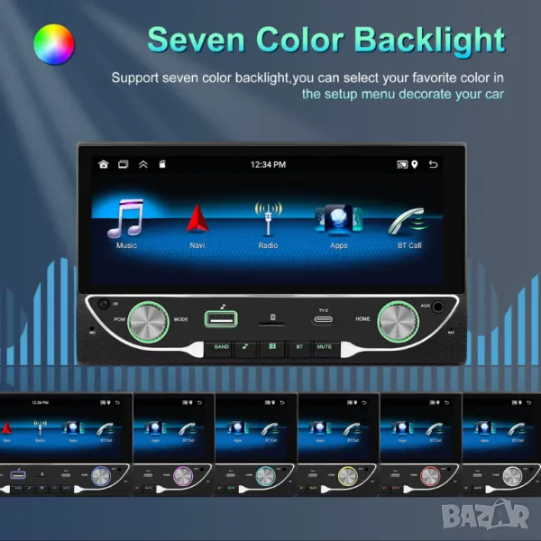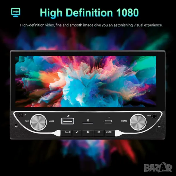 6.86” 1280*480 2-Din мултимедия с Android 13, RDS, 64GB ROM, RAM 2GB