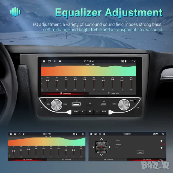 4. Настройки на звука според личните ви предпочитания посредством графичен еквалайзер с множество настройки, включително изместване на звуковия фокус. Поп, рок, джаз, класика, плосък, потребител, глас - множеството опции за персонализиране ви позволяват да адаптирате аудио изживяването по ваш вкус.