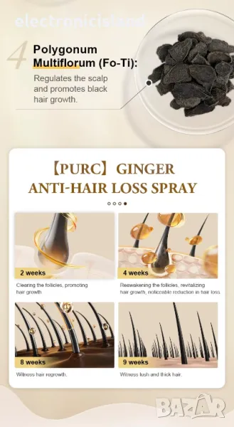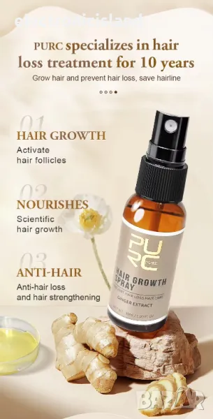 - Ревитализираща грижа за косата с PURC спрей за растеж на косата с джинджифил: