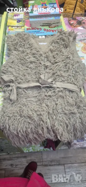 Продавам бежов елек с косъм велурена панделка → Обява 48268491