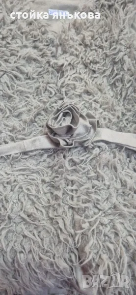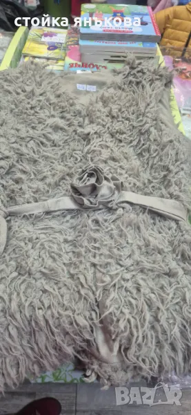 Продавам бежов елек с косъм и велурен колан с панделка. Размерът е S
