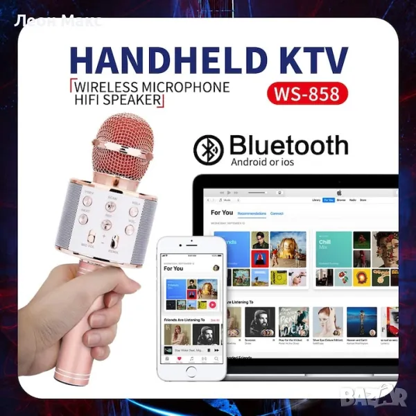 Караоке микрофон, Bluetooth говорител и USB плейър в едно.