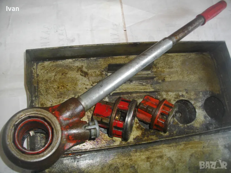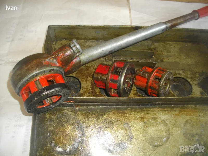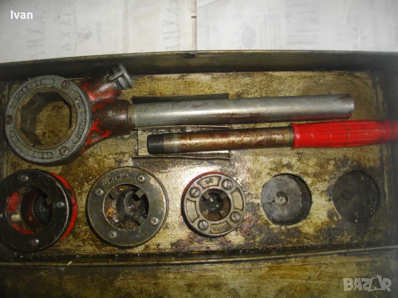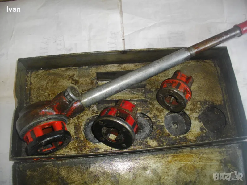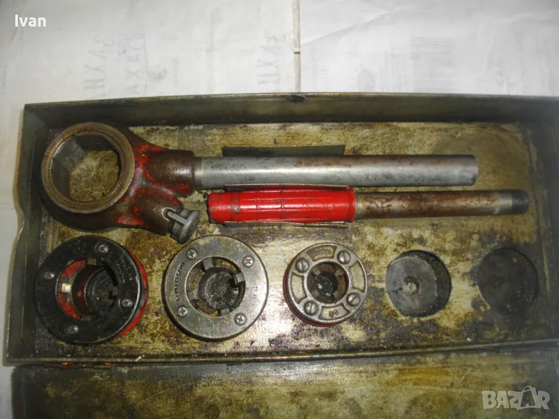 ОПИСАНИЕ на резбонарезен комплект Виракс в метален куфар с 3 глави за направа и ремонт на резби на водопроводни метални тръби до 1 1/4 " цол - цена 399 лв.Професионален комплект винтонарезен винтонарезка винторез плашка флашка пафта водопроводна чешмеджийска за направа и ремонт на резби на метални тръби,модел на Виракс - цена 299 лв. Френско оригинално производство. Марка-Virax.Тип 02.Оригинален комплект с 3 винтонарезни глави,размери-1цол- марка Virax, глава 1 1/4цола - марка UNIKUM, глава 1/2 цола - марка Ridgid. Комплекта е ползван.Всичките 3 глави са в отлично техническо състояние-зъбите на много добре заточени,нямат никакво износване.Винтонарезното рамо е на 2 части с резба за удължаване.Масивно,здраво,стоманено.
