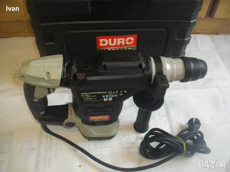 ОПИСАНИЕ на перфоратор къртач Дуро Про сив цвят - цена 159 лв /със забележка по патронника/. Марка и модел - DuroPro DPB 1500-1. Производство 2018 г. оригинално Германия, упоменато на маркировките. 4 позиции на работа - пробиване, къртене, удар, комбинирана. Машината е почти нова ,много малко ползвана.